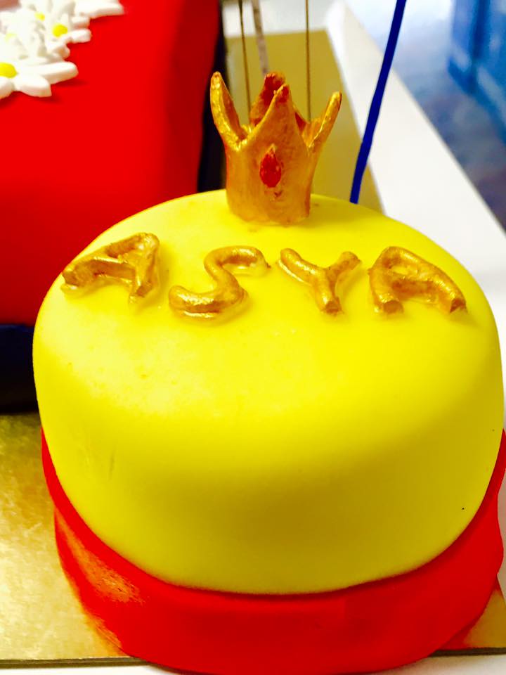 Salı günü kreşteki doğum günü için O’pera Butik Patisserie’nin sahibi olan canım arkadaşlarım üzerinde Asya’nın resmi olan büyük bir pasta ve Asya için ona uygun alerjenlerin olamdığı mini bir prenses pastası yaptılar. Ben de tarçınlı, zencefilli ve mısır unlu kek ile ıspanaklı ve patatesli mini börekler hazırladım. Asya’nın arkadaşlarına dağıtması için lolipop şekerler aldım. Masaları mavi, sarı ve kırmızı tabak, bardak ve çatallarla süsledim. Biz yemekhaneyi de balonlarla süslerken Prenses hanım öğretmeni ve arkadaşlarıyla sınıfında hazırlanıyordu.