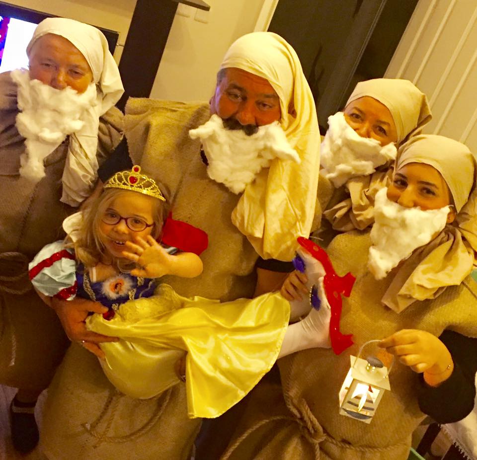 Teyzemler, Amcamlar bir kaç arkadaşımla evde ufak bir kutlama yaptık ama burada da beni büyük bir sürpriz bekliyordu. Eniştem, Teyzem, Anneannem ve Kuzenim İlayda günlerdir hazırlanıp Pamuk Prensesin cüceleri olmuşlar. Eminönü’nden aldıkları çuvalları dikip kendilerine kostüm, evdeki yastık kılıflarından şapka, pamuktan sakal yapmışlar. Ellerinde fenerleri bile vardı.