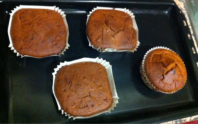 Yumurta, pekmez ve tahin çırpın. Diğer malzemelerde katın ve çırpmaya devam edin. Yağlanmış Kek kalıplarına ya da benim gibi kağıt kalıplara dökün.