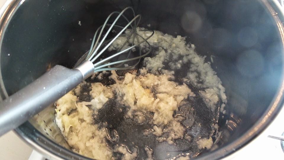 Rendelenmiş soğanı yağda kavuruyoruz ve soğanlar pembeleşince iki kaşık un koyup kavurmaya devam ediyoruz.