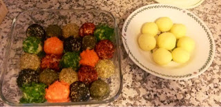 Soğumadan içine bir çorba kaşığı tereyağ, (ben keçi tereyağ kullanıyorum), bir çorba kaşığı limon suyu (limona dikkat), 1 su bardağı rendelenmiş kaşar peyniri (ben keçi kaşar kullanıyorum), ekleyin ve karıştırın. Ilınmasını beklerken ayrı ayrı kaplarda çörek otu, nane, kekik, pul biber, maydanoz, havuç ve istediğiniz baharat ya da sebzeleri hazırlayın. Ilınan patateslerden minik toplar yapıp bunlarla süsleyin.