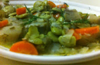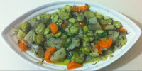 Üzerine küp doğranmış enginar ve havuçları yayın. Baklaları biraz şeker ve tuzla beraber en üste yayın.