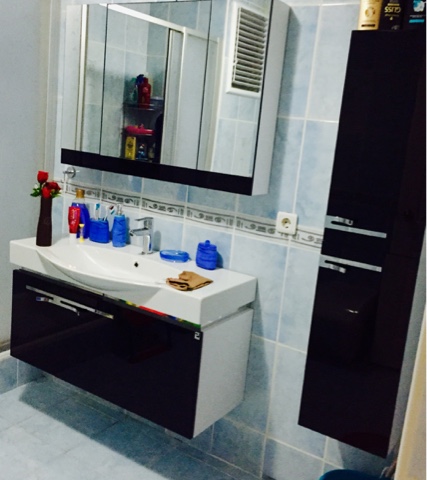 Çamaşır ve kurutma makinesi çıkınca banyo rahatsız etti beni. Eski dolabı gönderdim yerine oldukça uygun, teşhir ürünü bir dolap buldum. Yanına da en fazla havlu sığabilecek bir boy dolabı.