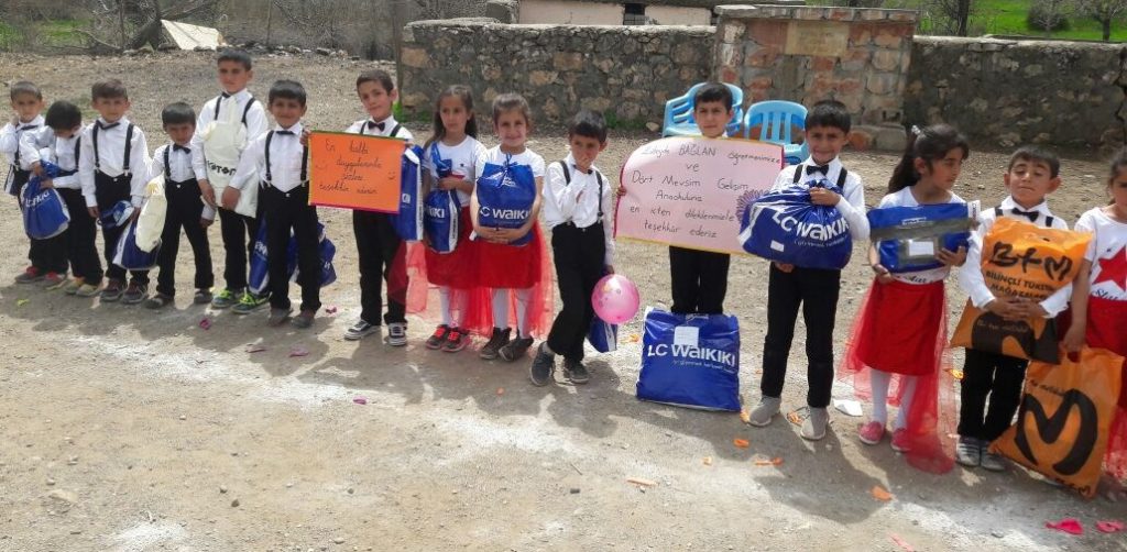 “Çocuklarımıza Atatürk ve insan sevgisini aşılamak için 2 yıldır 23 Nisan’ı Diyarbakır Silvan Kayadere İlkokul’undaki kardeşlerimizle kutluyoruz.” diyen Eğitim Danışmanı Zübeyde Bağlan, tüm veliler ve eğitmenleri ile topladığı 23 Nisan hediyelerini öğretmenleri aracılığıyla öğrencilere ulaştırdı. Öğrenciler geçen sene gibi yine pankartlar hazırlayarak teşekkür etti. Bizler için erken hazırladıkları gösteriyi ise öğretmenleri kayda alarak bize iletti.