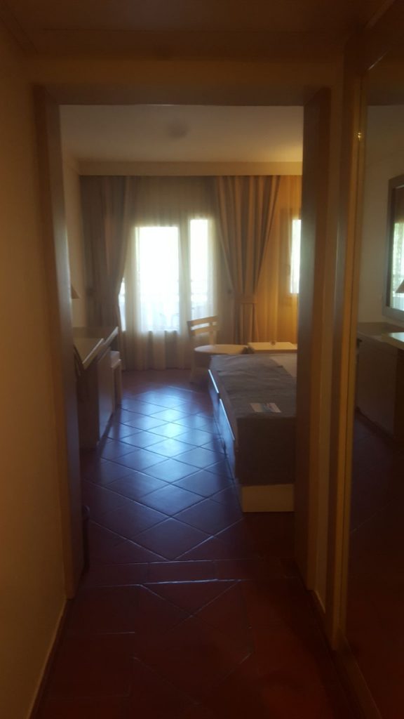 Tatili ilk planladığımızda daha kalabalık ve eğlenceli etkinliklerinin bol olduğu bir otele gideceğimiz için buraya ilk vardığımızdaki sessizlik bizi biraz korkuttu… Ancak otele yerleştikten sonraki huzurlu ortam çok hoşumuza gitti. Bu otelde de odaya yerleşmek öğlen saat 14.00 ama bizi 10.30-11.00 arası odalarımıza yerleştirdiler. Pazar günü restauranttaki ilk öğünlerimizde de kalabalık fazla yoktu ancak Pazartesi günü otel yoğunlaşmaya başladı.