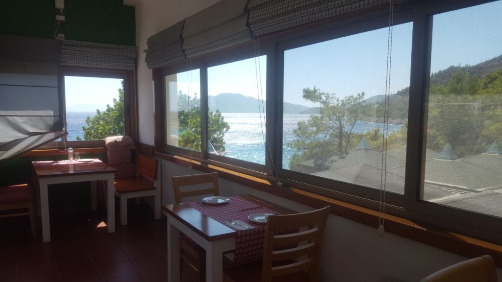 Otele ödediğimiz ücrete bir akşam alakart hizmet dahildi. Ya sahil kenarında balık-rakı ya da Mini Bodrum’da Türk Mutfağı tercih ediyorsunuz. Biz tabiki sahilde balık-rakı istedik. Hepimiz deniz çipurası (çupra) sipariş ettik. Kesinlikle tavsiye ederim çok taze ve güzel pişirilmişti. Mezelerin de neredeyse hepsinin tadına baktım, hepsi taze ve lezzetliydi.