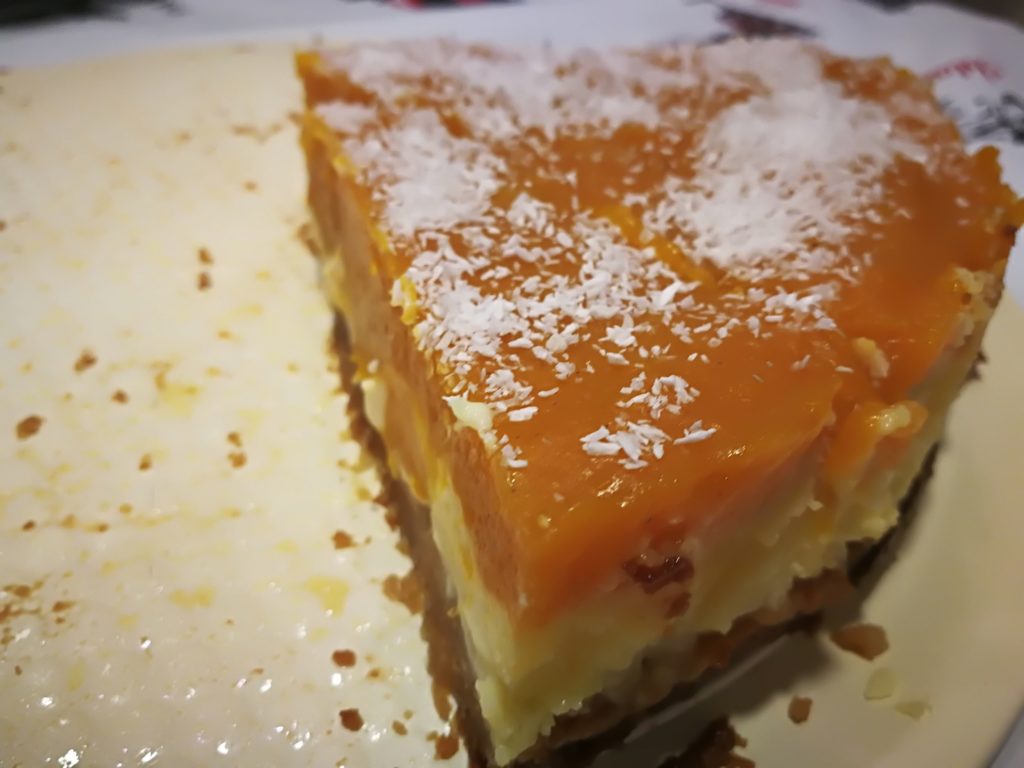 Soğuyan balkabağı sosunu pişen cheesecake kremasının üzerine dökün. 1 gün buzdolabında bekletip kalıptan çıkarın ve üzerine ceviz ya da Hindistan cevizi serperek servis yapın.